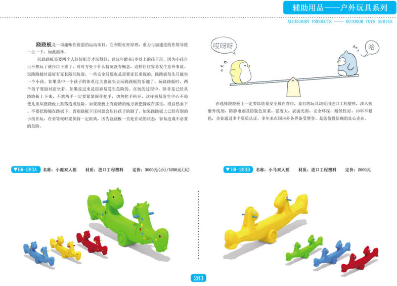 濟(jì)寧市玉河玩具有限公司專業(yè)生產(chǎn)、銷售幼兒園大中小型滑梯、蹦床、課桌椅、幼兒床等幼教用品